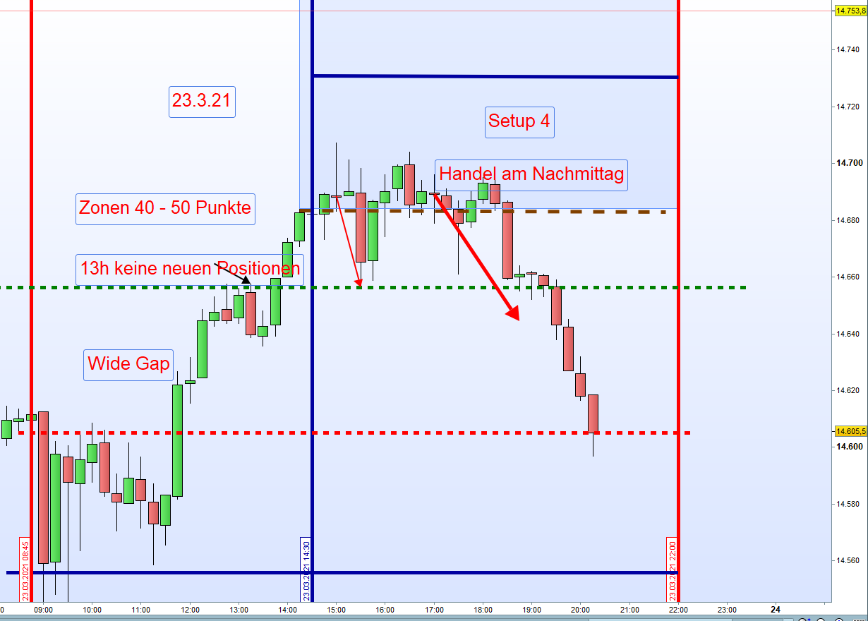 nachmittags ab 14 Uhr Handel Setup 3 bei 14660 Hoch bei 14707 ergo auch gute 40 Punkte