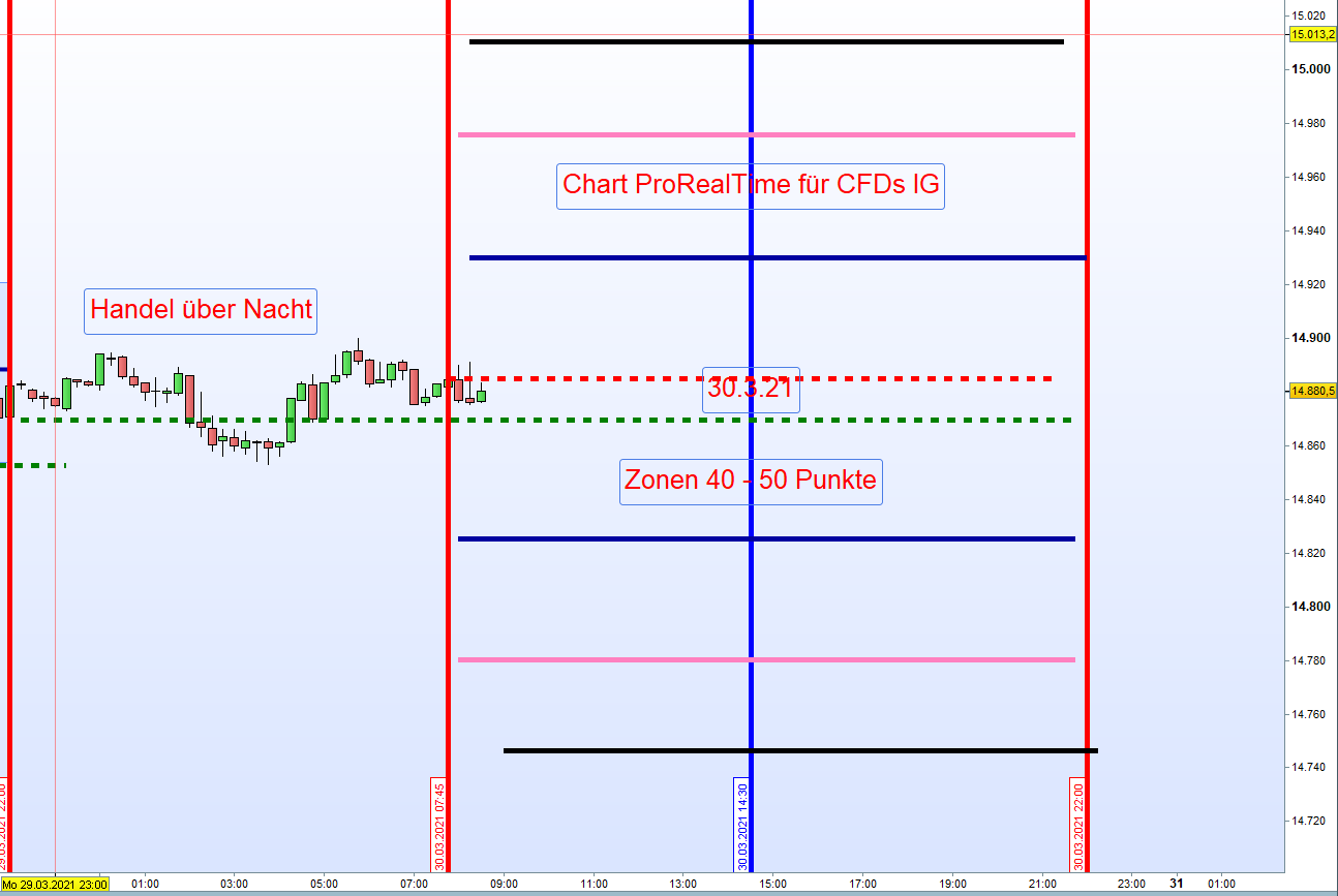 also ein klein wenig bin ich verwundert. M.E. gab es heute morgen ein Wide Gap. Um 9:00 hatten wir einen Kurs bei 14837 Eröffnung lag bei 14751 somit konnte man gut Richtung Eröffnung handeln. Oder sehe ich hier was falsch. Hätte auch gute 70 Punkte gebracht. Selbst vorsichtig gehandelt immer noch 40 bis 50. Oder kann dieses Gap nur Punkt 8:00 Uhr gehandelt werden.
