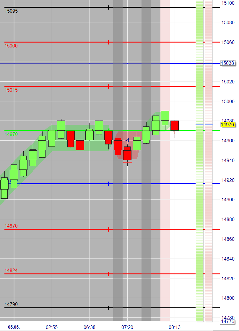 Ihr seht die EUREX Daten des FDAX (Juni) mit 1-min Kerzen.