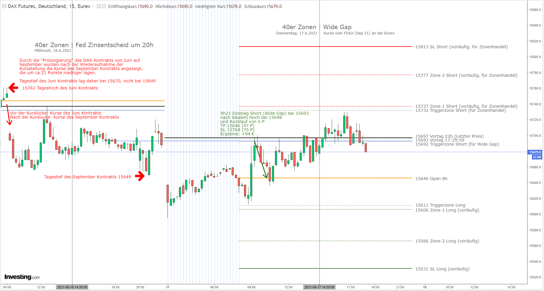 Wurde die Position abgewickelt, erfolgt der normale Zonenhandel. -