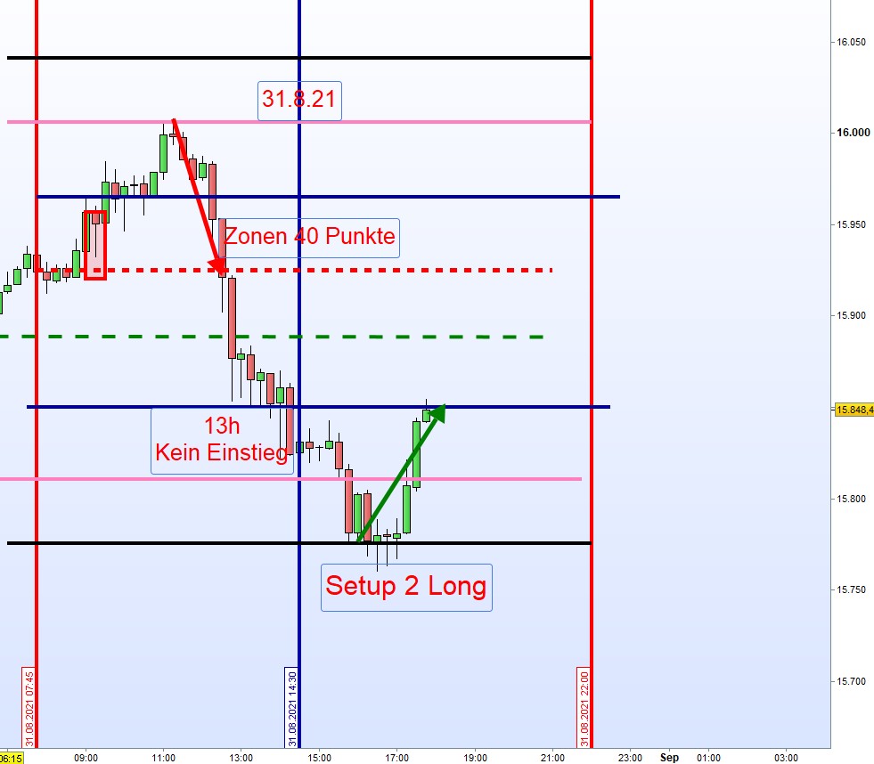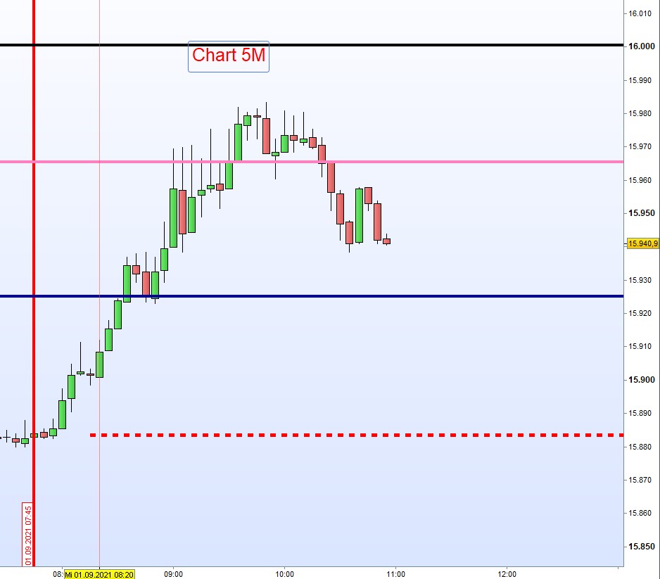 Der Einstieg höher mit dem 5M Chart ist nachvollziehbar. Lediglich ist ein Einstieg kurz vor 9:00h riskant da die DAX Eröffnung um 9:00h dem Trend = Hoch folgt.