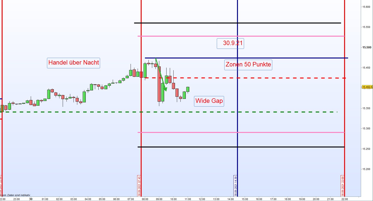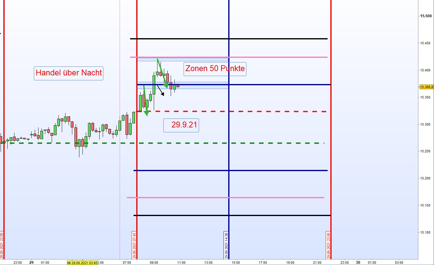 wenn wir uns das heutige Bild betrachten, wäre auch heute die Möglichkeit Long/Short in Richtung der Zonen gewesen, nachdem über dem Eröffnungskurs nicht gehandelt wurde lediglich darunter. FDAX-TRADING-STRATEGIE