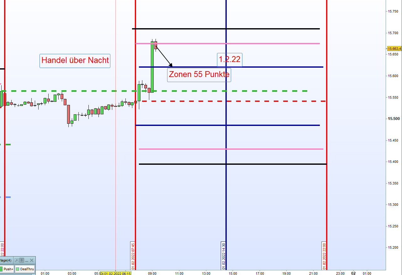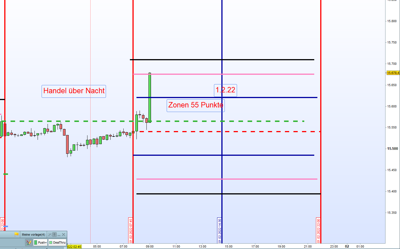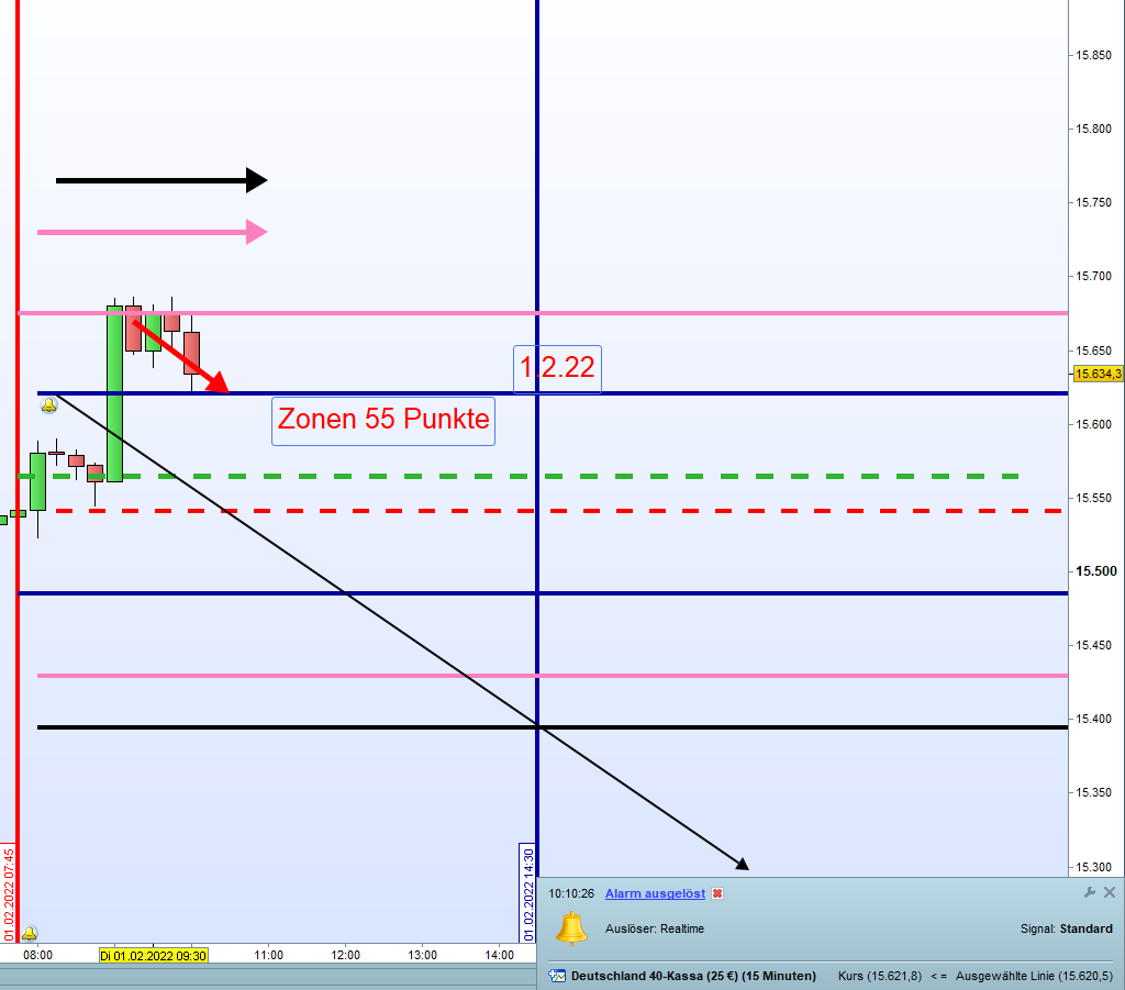 Wie gesagt. Wenn Einstieg nicht absolut gegen Regel und auch sonst nichts dagegen spricht Position eröffnen und Alarme für die zweite Zone und TP setzen.