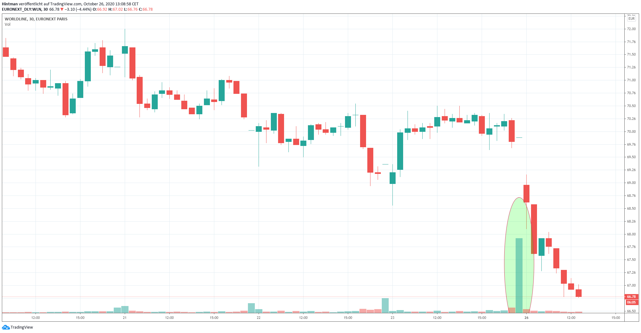 Bisher war ich aus einem ganz einfachen Grund der Meinung, das Volumen sei ziemlich unbrauchbar bei EU-Aktien. Warum? Wegen der bescheuerten Schlussauktion nach 17:30. Ein Bild sagt mehr als 1.000 Worte: