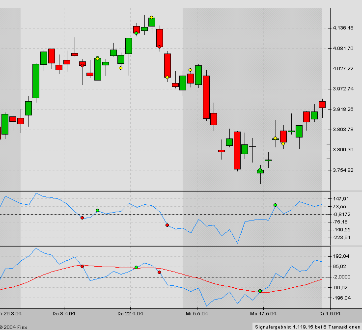 Natürlich sind die Ergebnisse beeindruckend - sie sind ja auch auf darauf optimiert, für die Vergangenheitsdaten, auf denen sie getestet wurden, eine möglichst gute Performance zu erzielen. Die Verwendung von 5 bis 6 Parametern (je nachdem, ob man "Kreuzung des Momentums (5) mit der Null-Linie" als 1 oder 2 Parameter zählt) mit Nicht-Standard-Werten spricht für sich - mit so vielen Freiheitsgraden und ohne Berücksichtigung von Transaktionskosten und tatsächlich handelbaren Kursen könnte ich selbst problemlos ein System mit einem Profitfaktor von über 3 auf Mehrjahressicht aus dem Hut zaubern.
