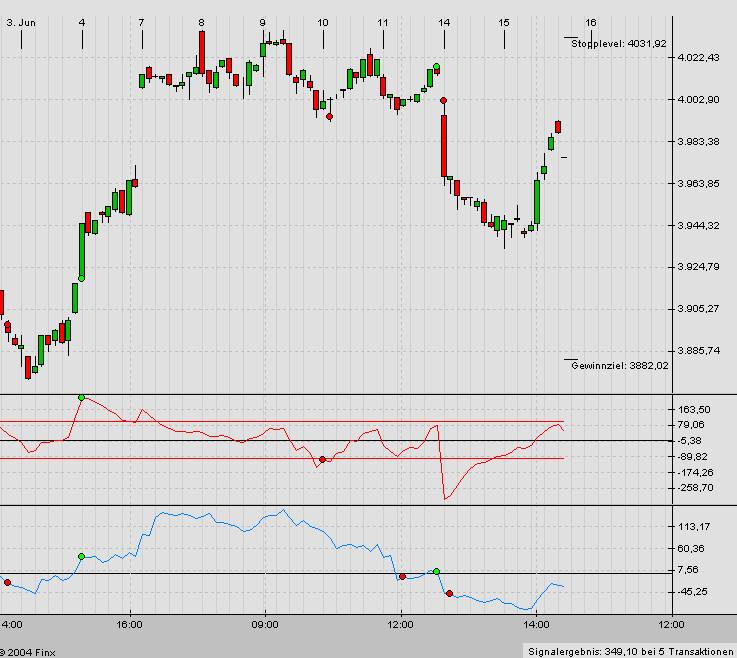 Mit Unterschreiten der 4000 - Einstiegslevel - um 15:00 Uhr wurde ein Short-Signal (MOM) ausgelöst.