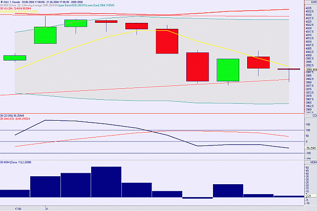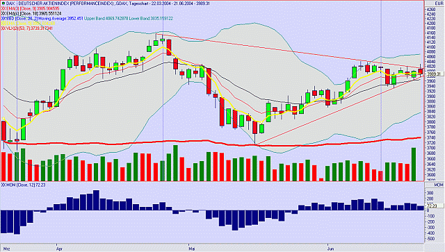 Das VLX-System wird auf Eis gelegt. Im Backtesting bis Novemer 2003 hat sich gezeigt, dass zuviele Fehlsignale auftreten. Gerade in starken Trendphasen. Und der Ausstieg kommt viel zu spät. Ok, man kann mit engen Stopps arbeiten.