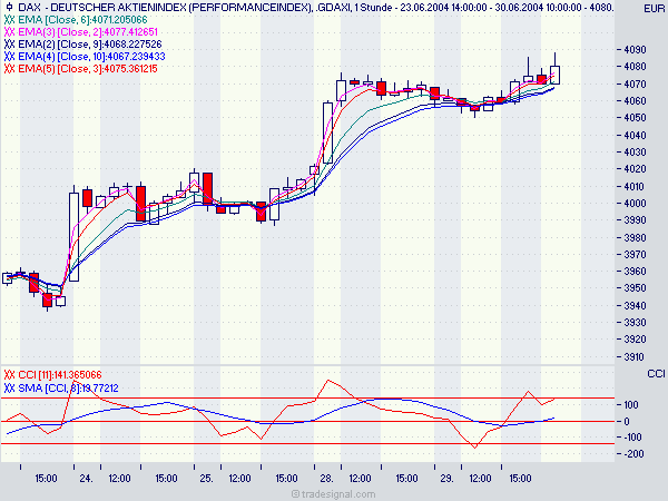 Das ist ein Versuch den Schwung etc. mit EMAs darzustellen.Die Einstellungen sind nicht überprüft sondern einfach mal so zur Anschauung.