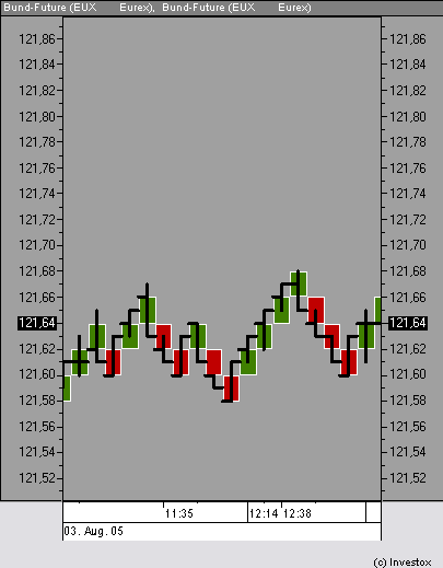Jemand von euch fragte heute nach den tatsächlichen Abläufen im Tick byTick Renko Chart! Hier eine Grafik,was hinter den Kulissen bei RENKO abläuft! Zu sehen ist der FGBL im 0,02 RENKO Format!Die überlagernden Balken sind ebenfalls der FGLB mit "echten" COHL Kursen wie man sie real bekommen könnte!