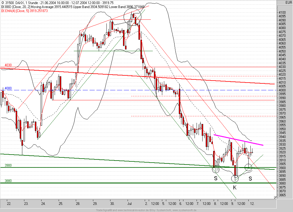 Short würde ich unter 3900 gehen, Stopp nur knapp darüber.
