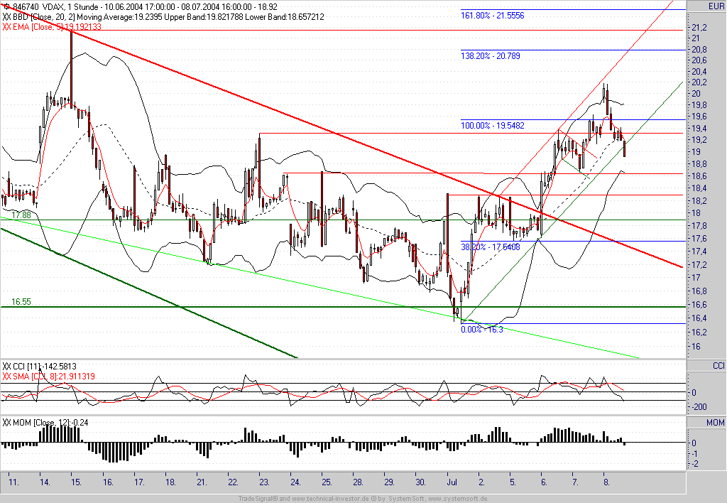 Auch der VDAX bestätigt eine Aufwärtsbewegung und bricht aus seinem kurzfristigen Aufwärtstrend aus.