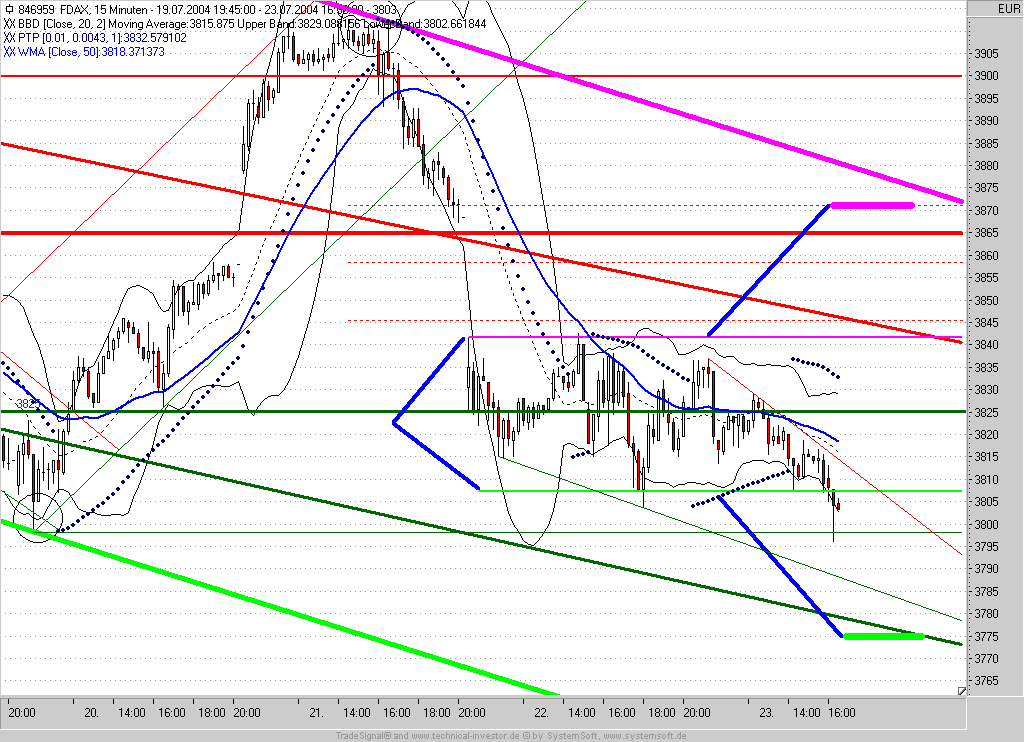 Dies hat bei mir gestern spät abends wieder einwandfrei funktioniert. Es hat den Vorteil, dass man die im Verlust geschlossene Position dann auch schnell vergessen hat. Somit auch ein psychologischer Vorteil. Die Short-Position heute habe ich geschlossen, da der DAX einfach nicht unter 3800 abtauchen wollte. Erst kurz vor Handelsschluss, wenn es i.d.R. zu Übertreibungen wegen des Orderstaus kommt, ging es mal ein paar Punkte drunter.Dieser Beitrag wurde bereits 2 mal editiert, zuletzt von „Exlibris“ ()