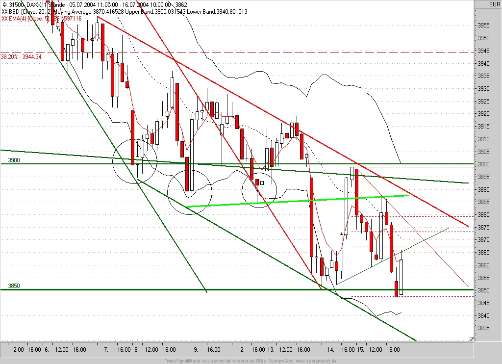 aber egal. nachdem der markt mich gestern im bereich 3850-3900 ziemlich verarscht hat meide ich diesen heute erstmal. schlieesen wir über 3900 bzw. 3905 ist immer noch genügend potential da. im moment geht bei 3890 das obere bollinger seitwärts was nen decke drauf schraubt.