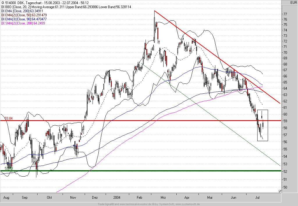 wir sind uns wahrscheinlich einig, daß der Dax in einer Abwärtsbewegung ist (egal, was jetzt morgen sein sollte, weiß man ja nie). So, DBK, hast du ja selbst gezeigt , ist noch nachhaltiger als der Dax abwärts gegangen.