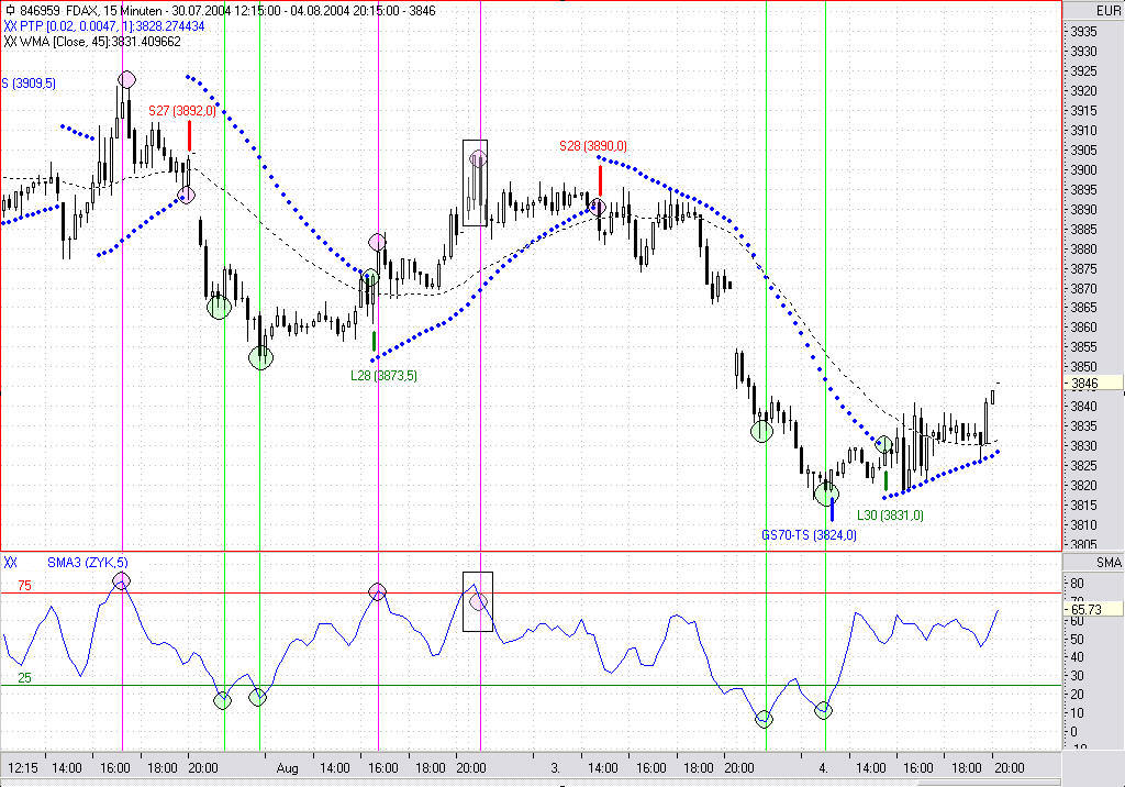 Sell-Market: 3901 (DAX 3891) GS70-TS (nur bei aktiviertem Gegensignal)