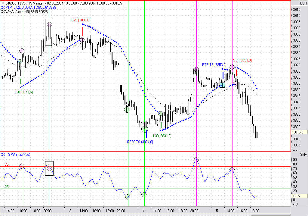 Sell-Market: 3901 (DAX 3891) GS70-TS (nur bei aktiviertem Gegensignal)