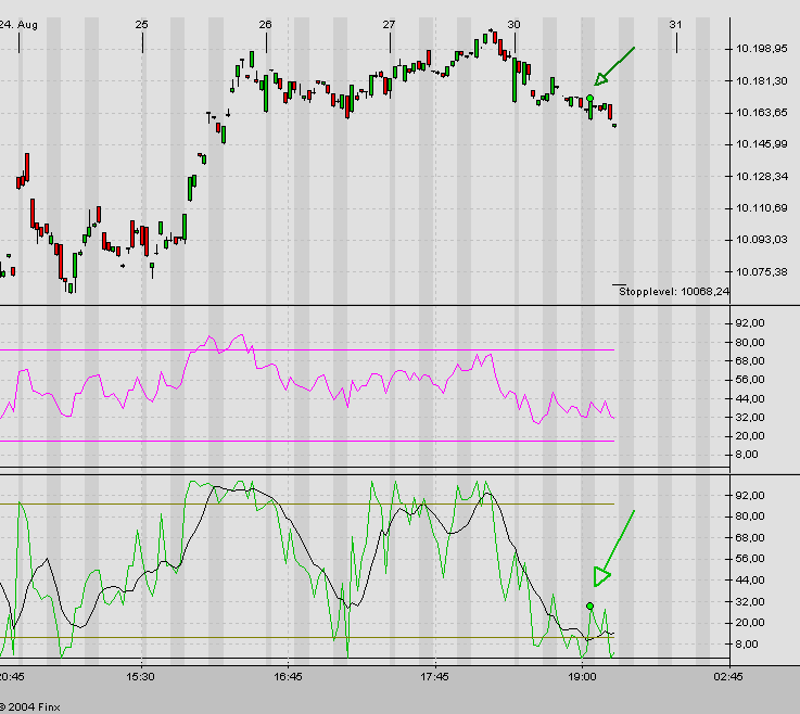 Um 19:45 Uhr ergab sich im Dow-Jones ein Long-Signal bei 10171. Der Stopp im Dow liegt bei 10068.