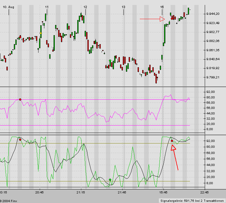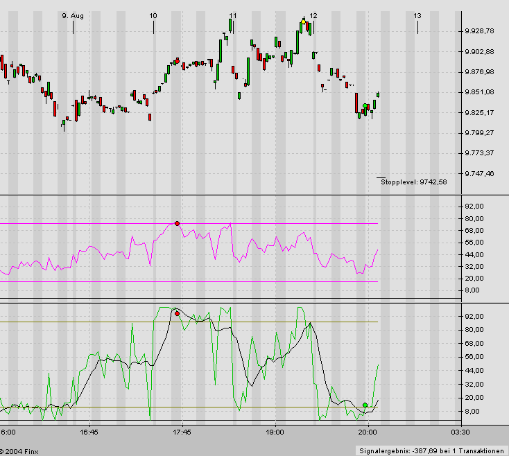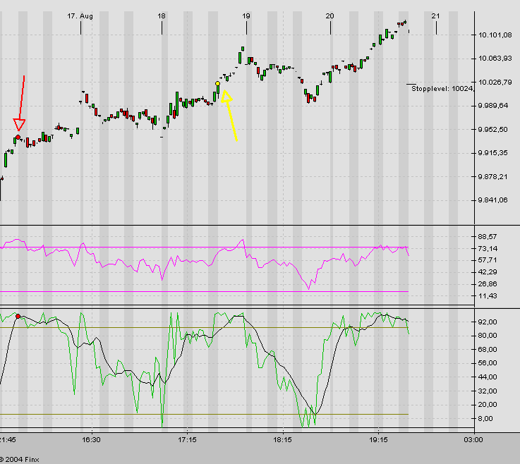Um 17:15 Uhr ergab sich im Dow-Jones ein Short-Signal bei 9933. Der Stopp im Dow liegt bei 10033.