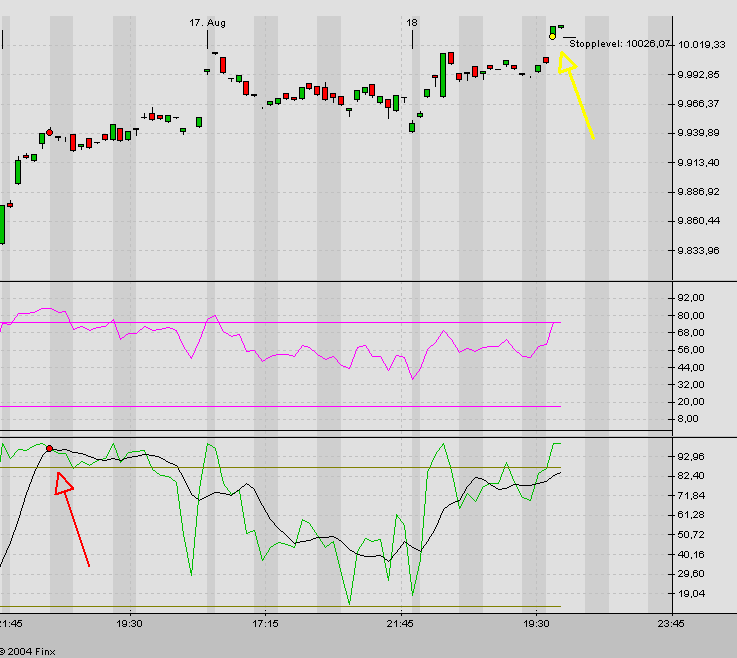 Um 17:15 Uhr ergab sich im Dow-Jones ein Short-Signal bei 9933. Der Stopp im Dow liegt bei 10033.