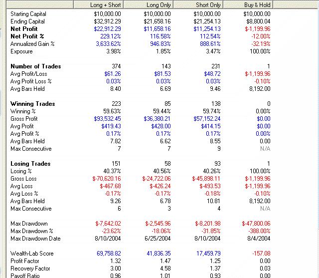 Das System war mit Wealth-Lab entwickelt und erfolgreich getestet. Allerdings wie häufig: Test TOP, Realität FLOP. Nach kurzer Zeit ist das System eingebrochen. Also ist das BunnyCross (spiegelbildlich-nicht invers) doch dauerhaft besser.