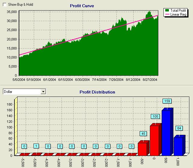 4. Backtest mit wealth-lab (durch den Erfinder -nicht mich) war extrem erfolgreich, Kapitalkurve schön gerade - ca 35 % Winkel.