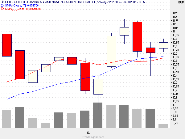 Lufthansa gibt immer noch kein eindeutiges Signal (Kurs und MA`s divergieren).