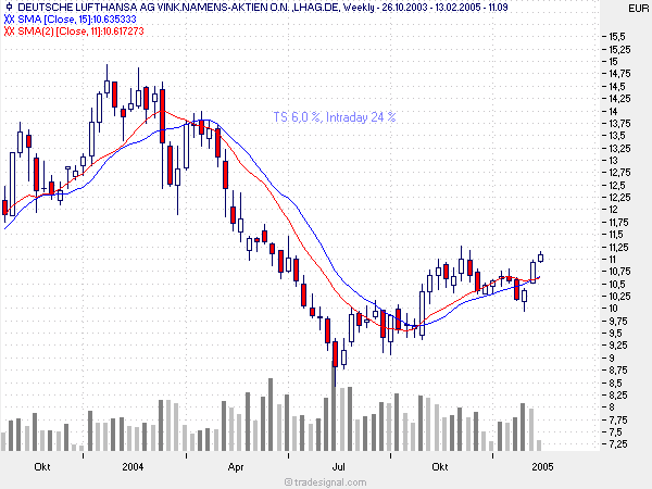 lufthansa generiert heute ein micro-short signal (Schnitt um 1-2 Cent), was zunächst nicht gehandelt werden wird, da kurstrendrichtung und sma-schnitt divergieren. montag wird abgewartet, ob eod das signal immer noch besteht.