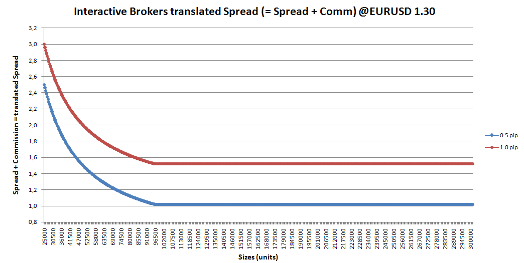Ich hab eben mal die Spreads angeschaut, die sind (Freitag abend) durchgängig in den gängigen pairs bei 0,5 pips. Ein Testtrade mit 1 lot brachte bei 0,5 pips Gewinn unterm Strich einen Verlust von 23 cent, da für jeden Kauf/Verkauf, egal welche Größenordnung, eine Kommission von 2,6$ berechnet wird. Will heißen, spread plus Kommission ergibt (im Beispiel heute Abend) 1,05 pips bei 1 Lot. bei 2 Lot 0,75 pips. Will jemand mehrere Milliarden handeln, fällt die Komm. nicht mehr nennenswert ins Gewicht.![]()