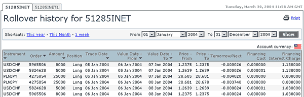 Forex Rollover History offers a list of all positions that were held