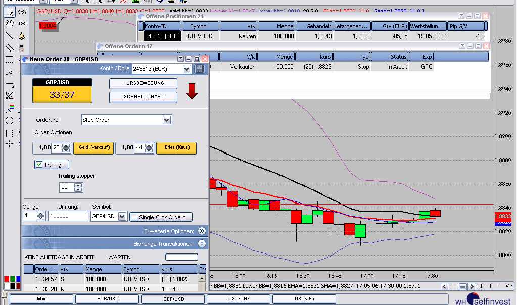 Bei der WHS Forex Station - die auch GFT nutzt - ist Trailing Stop über die Orderart "Stop Order" einzugeben.