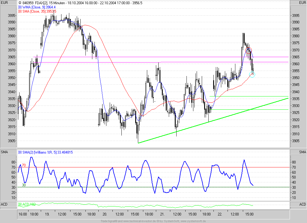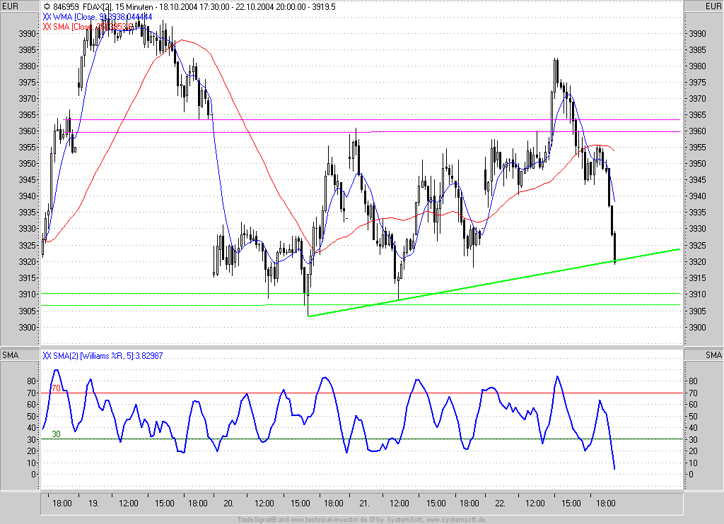 Ich für meinen Teil halte einen Kontrakt Long bei 3920,0 übers WE als Hedge für meine EOD-Short´s. Auf Tagesbasis werde ich aus dem Kursmuster der abgelaufenen Handelswoche auch nicht schlau.