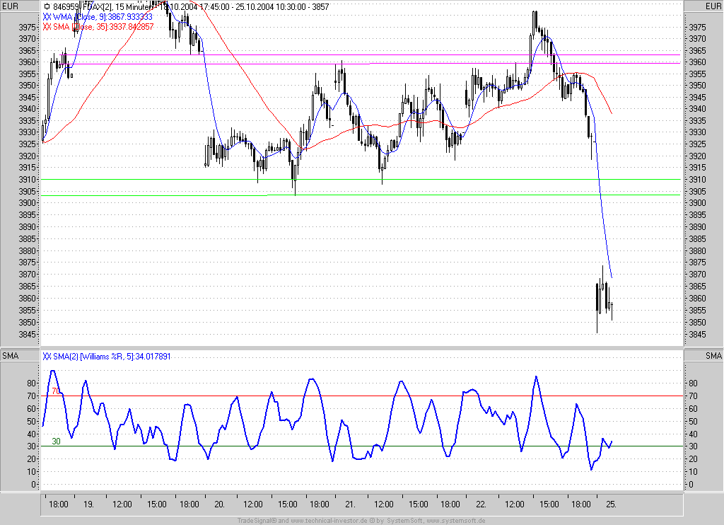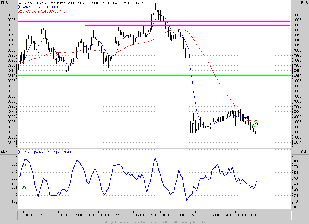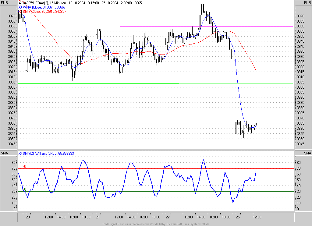So - die Setup-Bedingungen für einen Swing-Trade waren um 12:15 mit einem Periodenschluss über kurzfristigem MA gegeben, da zudem die Schwungkraft gemessen über die beiden MA`s doch merklich abnimmt. SL liegt auf 3840,0. Das Kursziel liegt am langfristigen MA, wobei ich für mich den Bereich 3905,0/3910,0 ins Auge fasse.