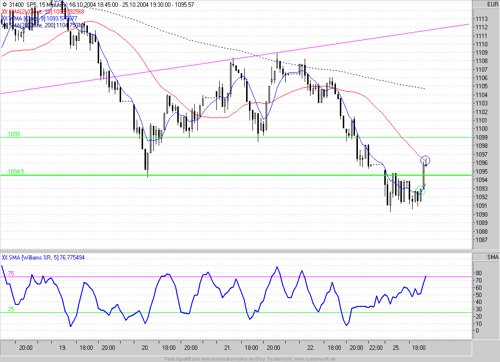 Long-Trade (SPX): (Entry: 25.10.2004/19:00 - 1.Teil-Exit: 25.10.2004/19:15)