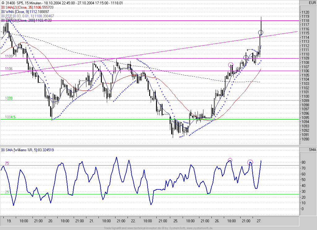 Short-Trade (SPX): (Entry: 26.10.2004/19:15 - 1.Teil-Exit: 26.10.2004/21:50)