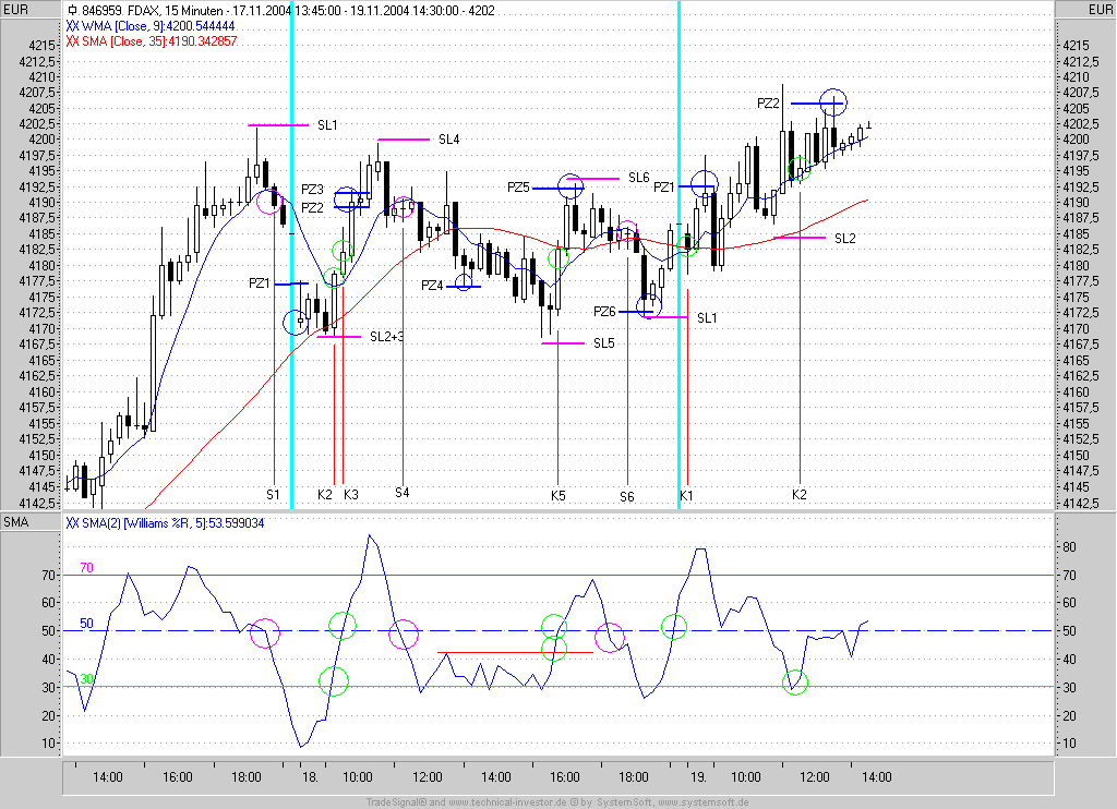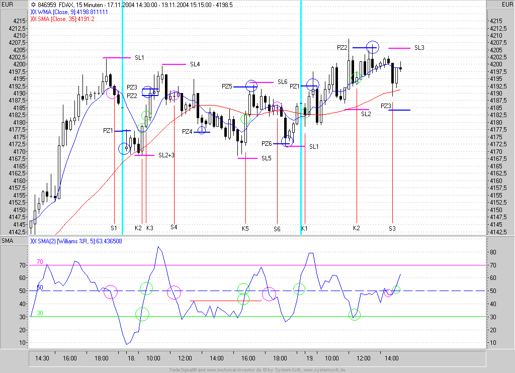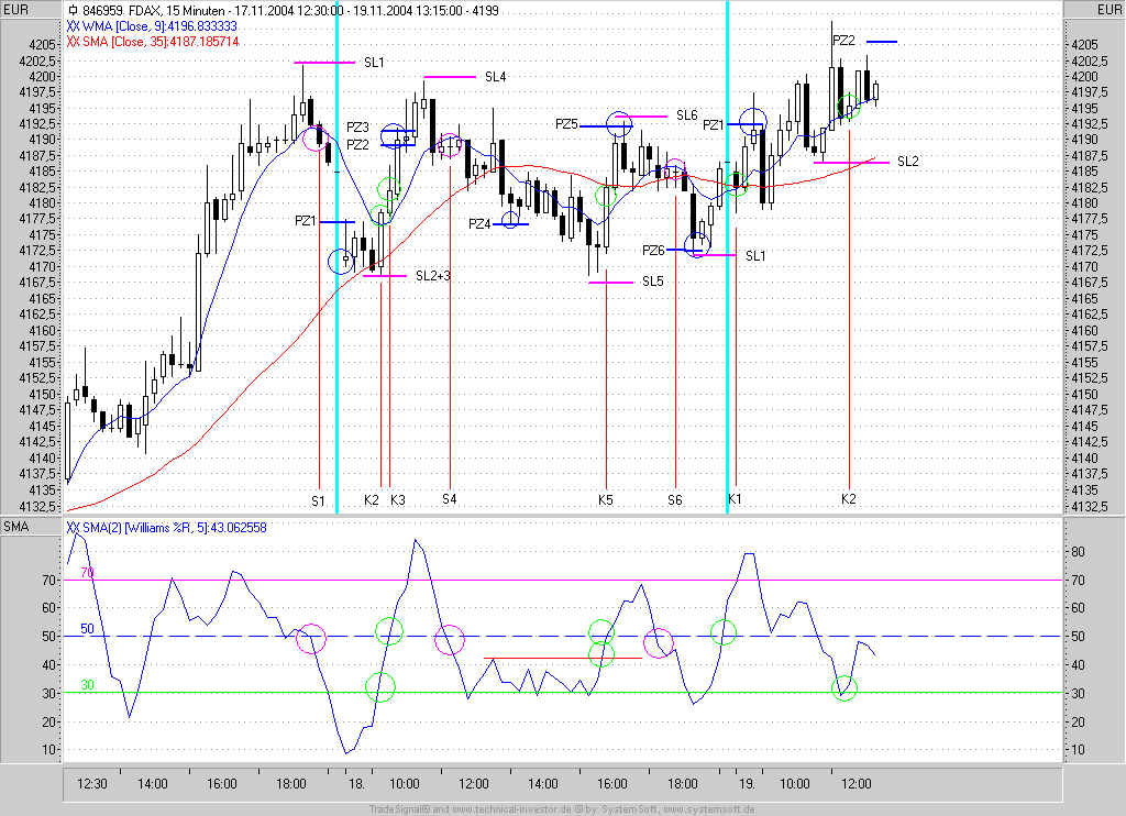 Zu deinem Short Signal: würde auch folgendes gelten: mit dem Close < WMA würde die Latte an bärischen Divergenzen von 9:45 angefangen ihre Bestätigung finden. (Obwohl du hattest ja einen Long trade zwischendurch). Außerdem kippt das MA-Histogramm ab.