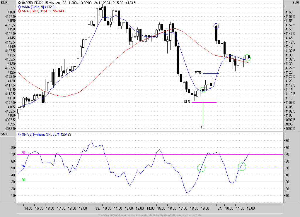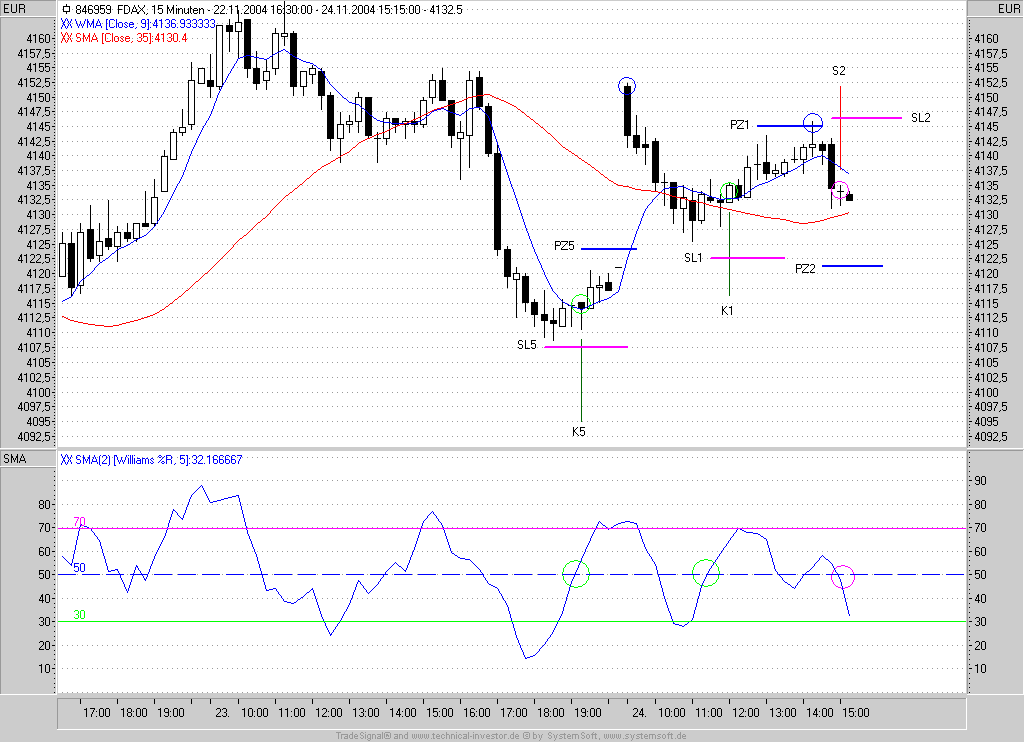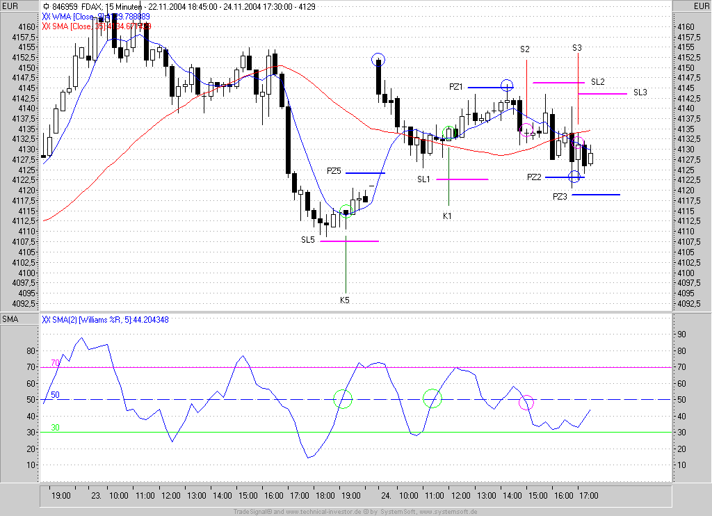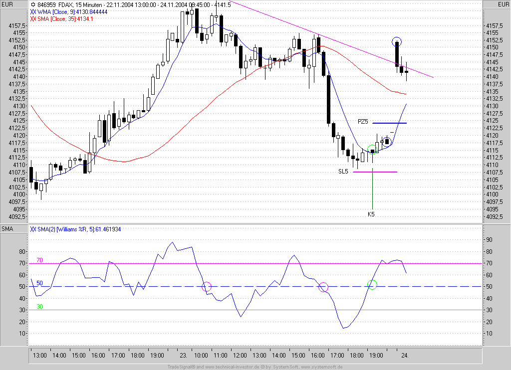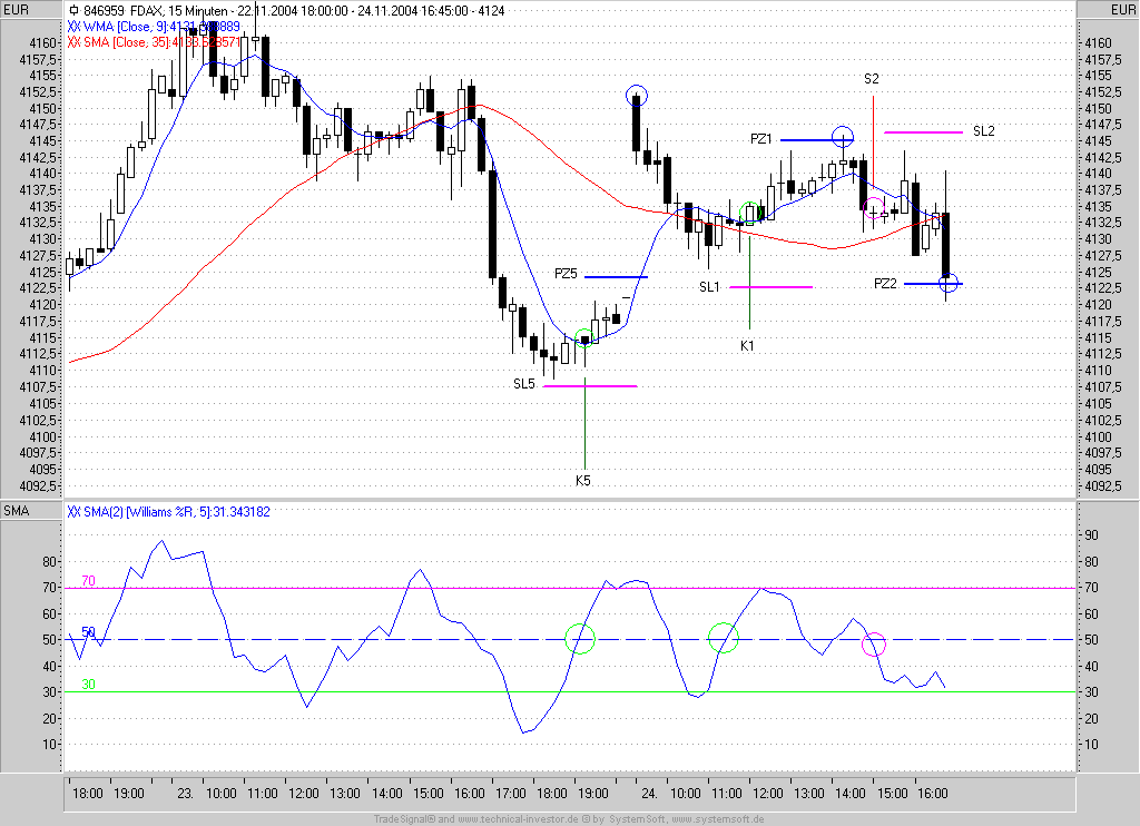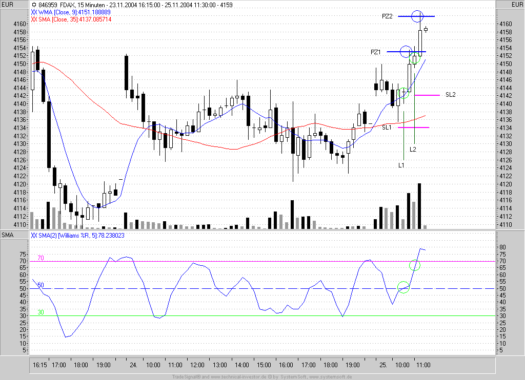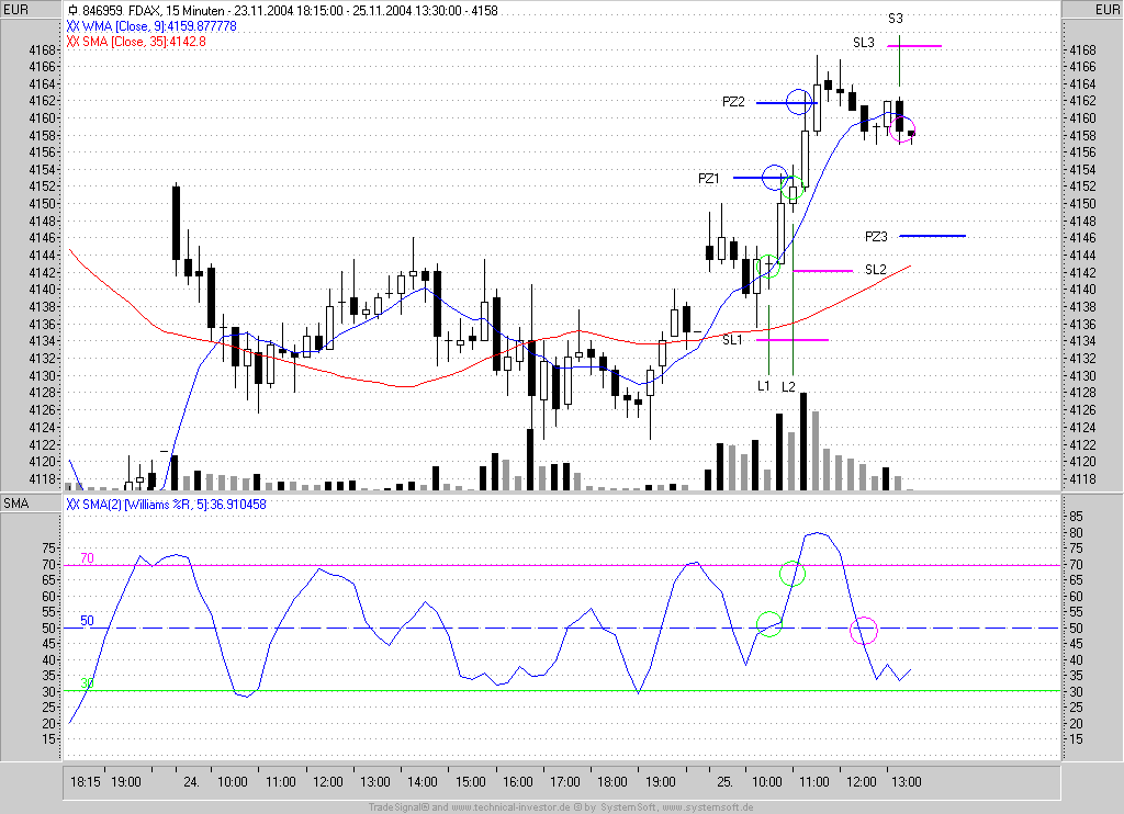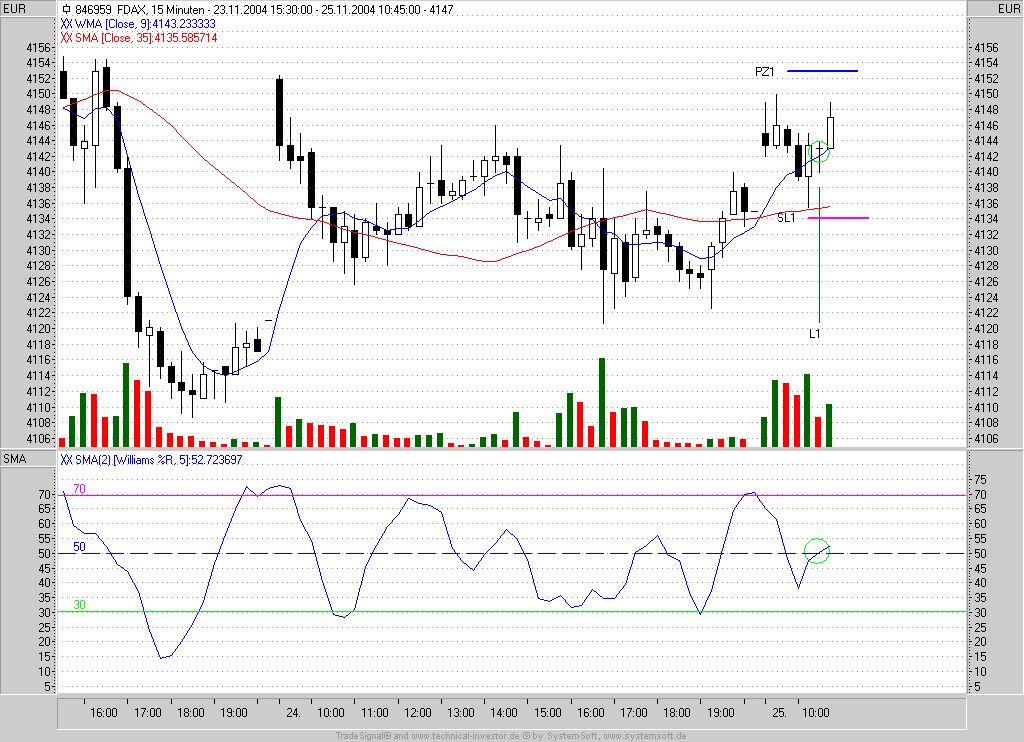 Völlig richtig! Das hätte einen 2P besseren Einstieg gebracht. Ich konnte allerdings die Order gar nicht so schnell einstellen. Von daher erfolgte mein Einstieg etwas später zu einem ungünstigeren Kurs. Wenn ich dies jedoch auch noch berücksichtigen müsste, dann käme ich mit den Ein-/Ausstiegs- und SL-Kursen überhaupt nicht mehr klar. So habe ich meine eigenen noch im Kopf und muss nicht rumrechnen.