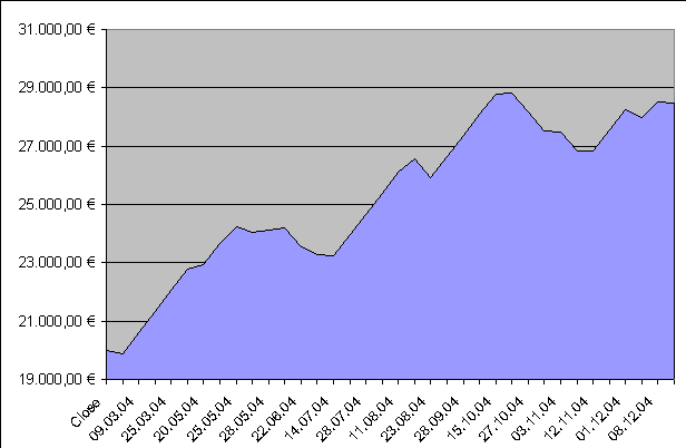 Die System-Performance beläuft sich damit seit 18.11.04 auf +704,5P bei 141 Trades (Average-Trade +5,0P)