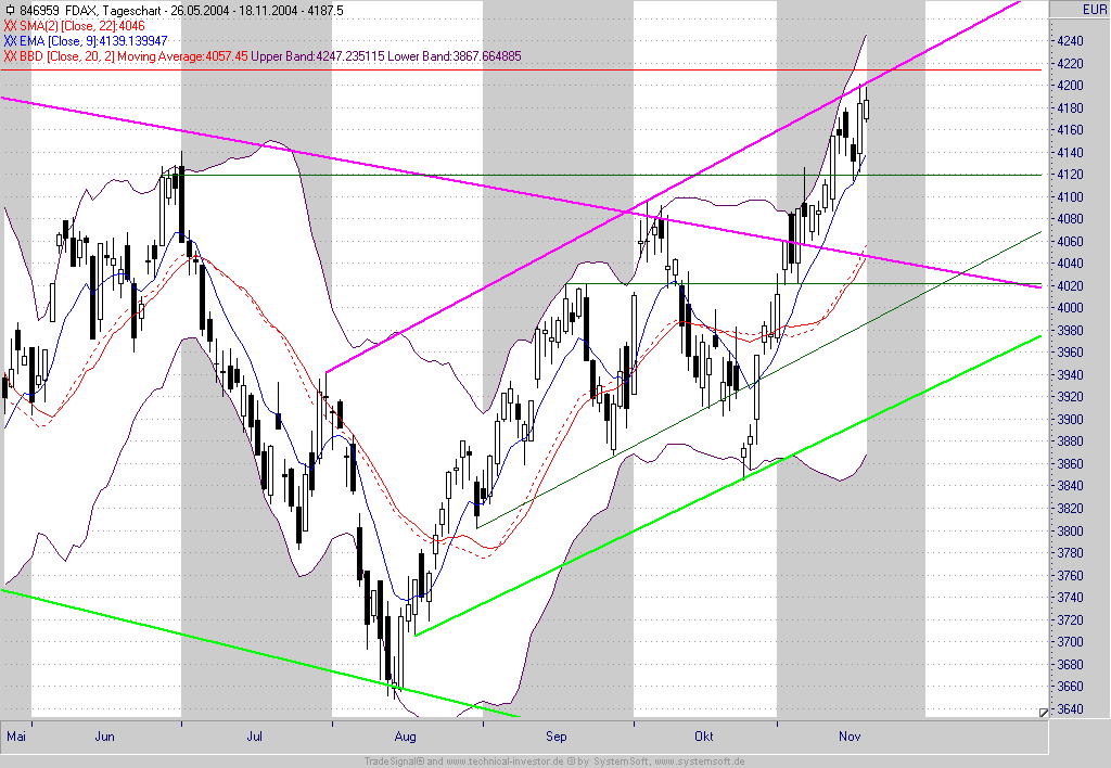 das mit der 4202-Marke war in der Tat schon fast hellseherisch (wie war das mit dem Huhn und dem Korn?). Leider bin ich zwischendurch mal mit meiner Long-Position ins Schleudern geraten. Das Profitziel wäre gestern erreicht worden. Na ja - kann man nichts machen. Dafür hat der zwischenzeitliche Short -20P Verlust eingefahren.