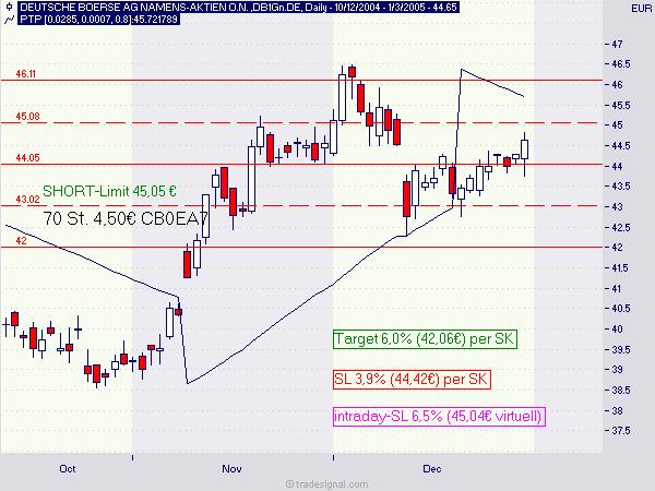 Heute habe ich das Long-Signal vom 29.03.05 "nachgeholt", da sich ein sehr gutes CRV ergibt.