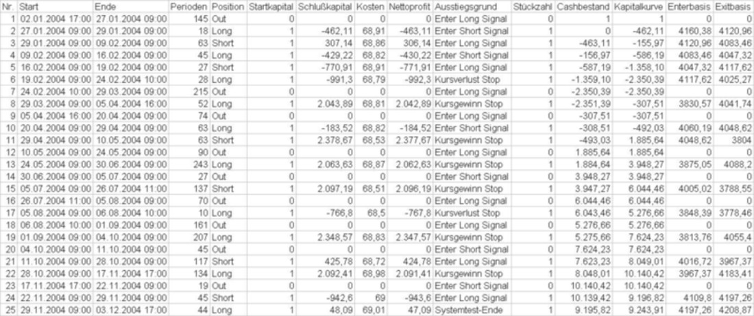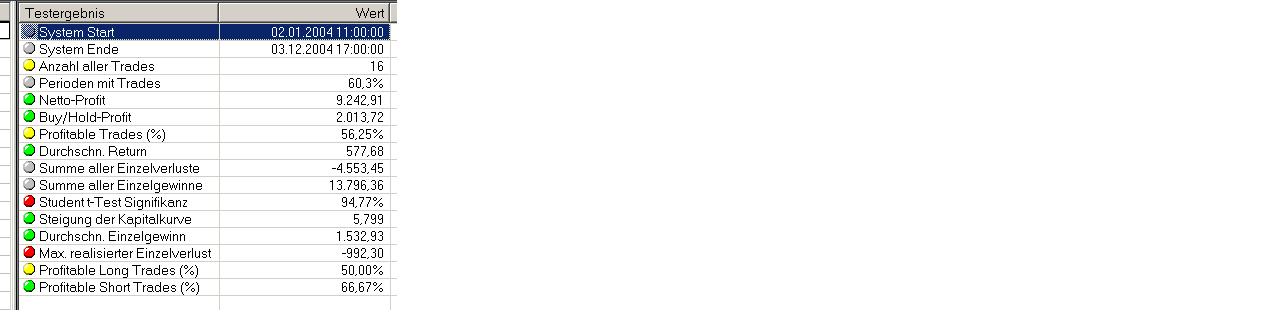 Im Ergebnis des Backtestes bleibt festzuhalten, dass Long-Trades mit RWE auf Wochenbasis mit den Pi-Linien absolut unlukrativ sind.