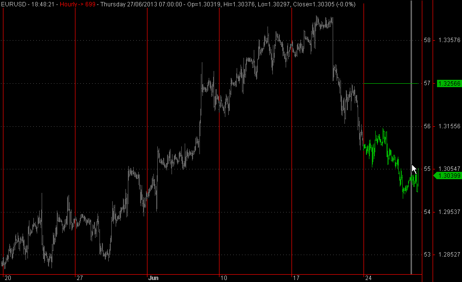 Wenn man es im MT4 machen will, läßt sich meines Wissens die Preisachse nicht abschalten und durch eine eigene ersetzen. Nichtsdestotrotz sind aber selbst erstellte simple Gridlinien ohne Probleme selbst im MT4 möglich.
