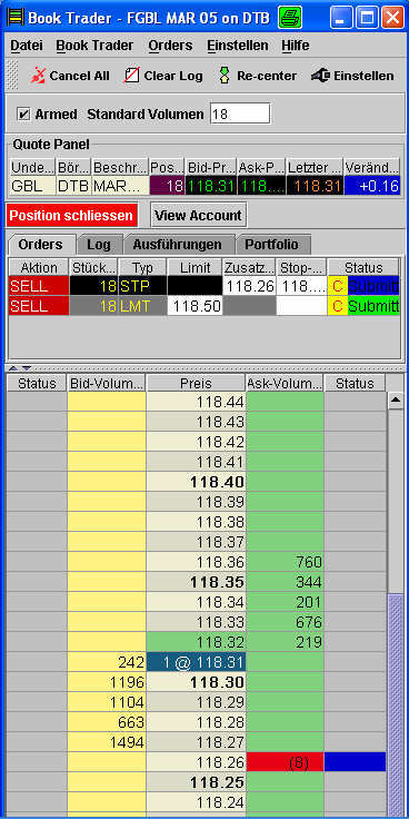 Da es nicht recht vorwärts geht wurde die Long-Position zunächst bei 118,36 mit +5T glattgestellt. Abwarten ist heute definitiv die bessere Variante.