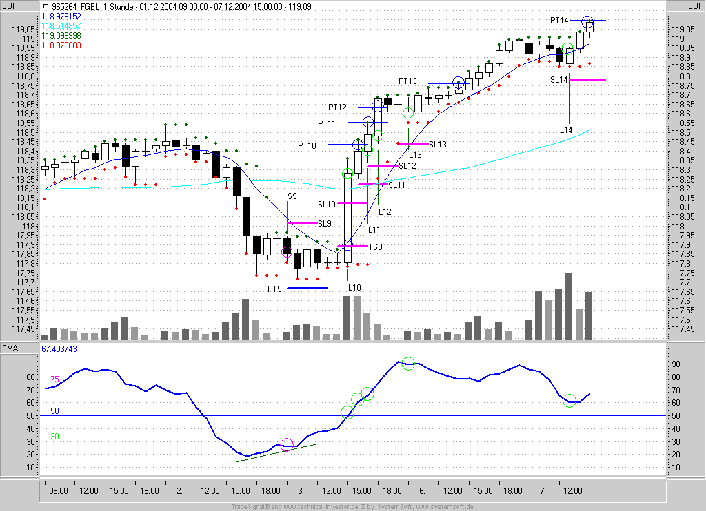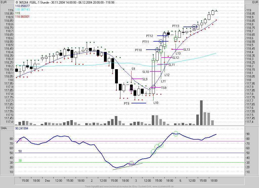 Gesamt (26.11.04 - 06.12.04): +140T (Trefferquote 77% / Average-Trade +10,7T)Dieser Beitrag wurde bereits 1 mal editiert, zuletzt von „Exlibris“ ()