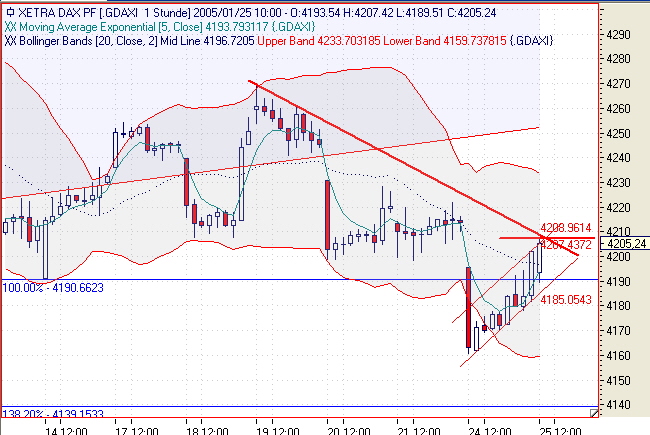 betrachte ich den letzten Trade im nachhinein, so muss ich wohl erkennen, dass der SL etwas zu knapp war, zudem bei etwa 4210 Widerstände sich tummeln; da hätte man wohl mehr Luft lassen sollen;
