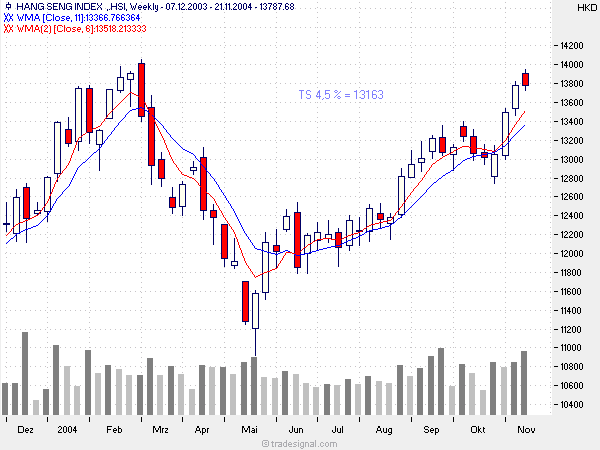 Spannend wird es beim Nikkei 225. Die positive Entwicklung vom Freitag lag im Hoch genau an Deiner roten Linie. Mal sehen, ob die unten beschriebene gute Stimmung anhält und der Ausbruch nach oben gelingt.