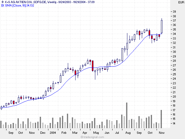 nachdem die präsentierten Zahlen gut ausgefallen sind und für 2005 weitere Preissteigerungen angekündigt wurden, bricht K&S heute auf neue All-Time-Highs aus.