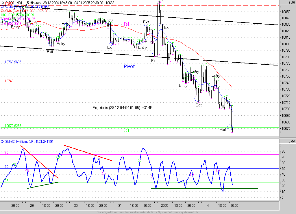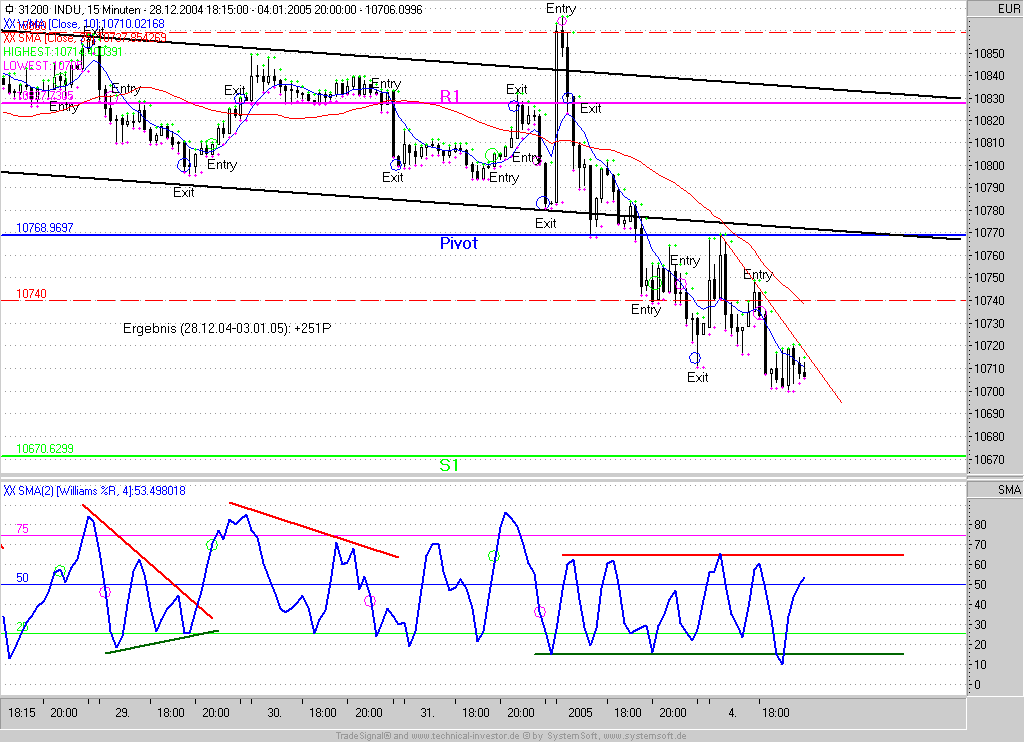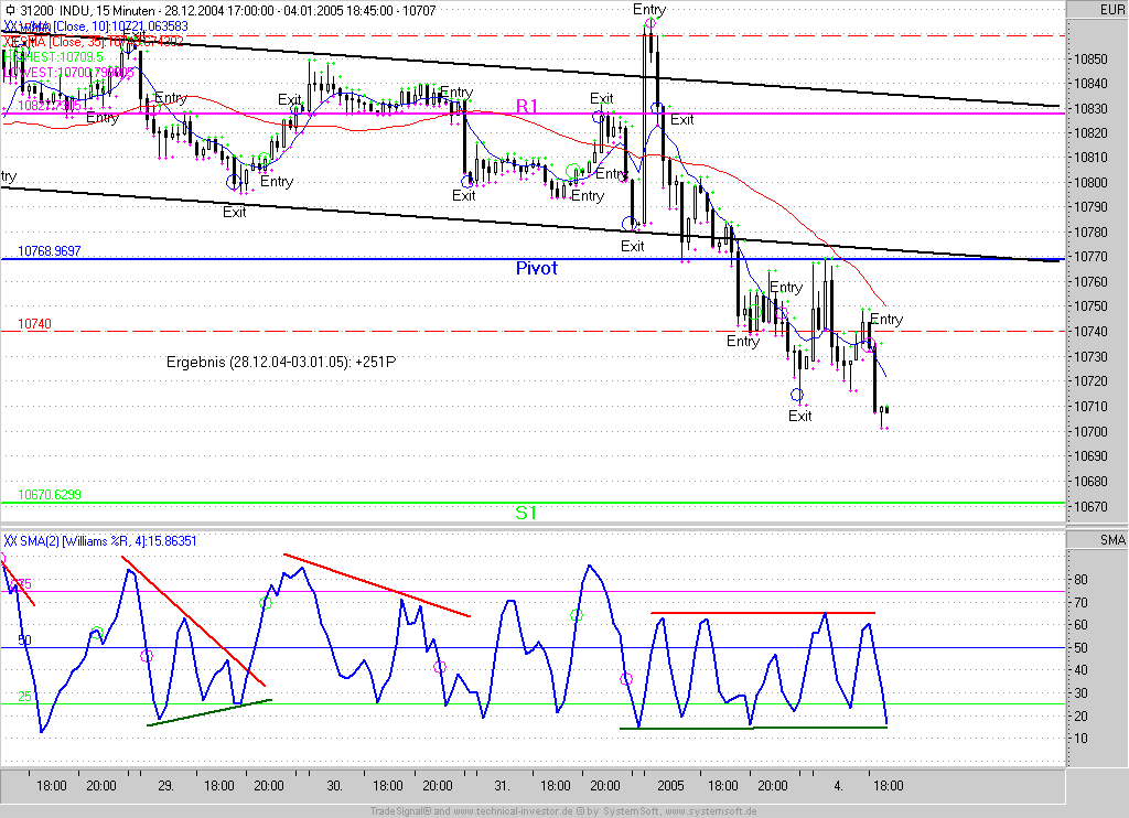 Die Short-Position wurde soeben am Daily-S3 bei 10712,0 (Future) mit +35P vorzeitig glattgestellt. Macht zusammen +70,0P. Bei dem heutigen Reversal wären alleine ca. 140P möglich gewesen. Der Einstieg wäre nicht besser möglich gewesen, allerdings erfolgte der Ausstieg viel zu früh. Mit solch einer Bewegung habe ich weis Gott nicht gerechnet.