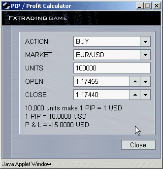In Oanda gibt's ein sehr cooles Teil (Tools-Menü), den Pip-Calculator. Da wählst Du Währung und Positionsgröße, und er sagt Dir in der Zielwährung wie viel ein Pip wert ist. Du kannst auch nen Buy/Sell Point eingeben (z.B. Buy-Kurs und Stop-Loss Wert) und er sagt Dir dann die Differenz auf die Position bezogen.