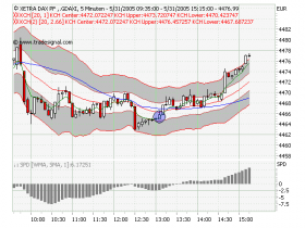 prinzipiell finde ich auch, daß ein antizyklischer Einstieg mit weniger Risiko behaftet ist als ein prozyklischer Einstieg. Allerdings sind die Punkte, die ich auf 5 Min Ebene abgebe, doch sehr wenig an der Zahl. Auf 1h oder Tagesbasis ist das natürlich anders. Bei der momentanen Vola zumindest. Auf Tagesbasis schaue ich mir lieber Bollinger Bänder, Fibos und Formationen/Trendlinien an. An Widerständen konnte man m.E. nach doch ganz gut einsteigen. Hier habe ich allerdings noch nicht so wirklich ein System gebastelt. Problematisch ist für mich vor allem zu erkennen, ob der Kurs wieder eine Seitwärtsphase ausbildet oder einen neuen Trend startet. In erstem Fall kann man ganz gut von Kante zu Kante der Bänder traden. Wenn der Kurs dann aber anfängt, am Band entlangzulaufen....