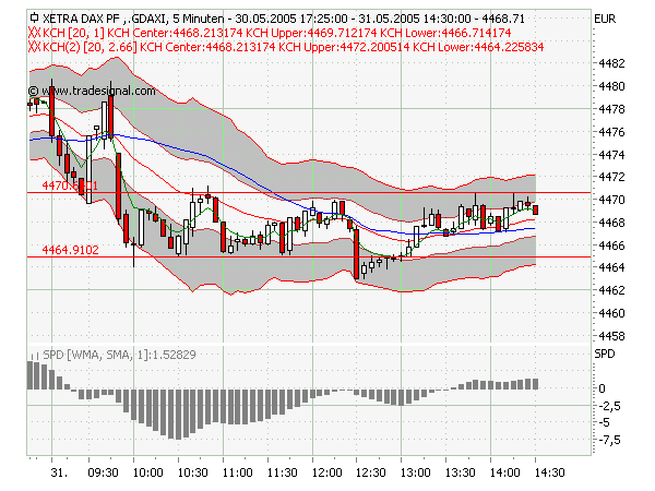 Dafür ist übrigens wirklich der Keltner besser geeignet; deshalb bin ich aber auf Bollinger übergewechselt, der ja unmittelbar keine Trendaussage trifft (das nur als Nebeneffekt in bestimmten Konstellationen). Und eine Trendvorgabe behindert mich eher.